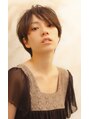 前髪斜めバング ややセンターパート 耳かけショート