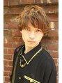 毛先にパーマをかけたラフショート。マッシュベースにカットして分け目なしのトップふんわりです。サイドのボリュームが気になる方は、ツーブロックにして下さい。