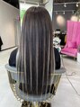 暗めのカラーにエクステでハイライトを入れたスタイル