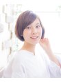 前髪に自然なカールをつけるパーマをかけて、全体はハンドブローでナチュラルなツヤ&丸みの出るショートボブ♪
