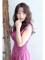 前髪はシースルーにし、32mmのコテでミックスにねじり巻きをします。表面はランダムに立体感が出るよう個別で巻いてふんわり感を出します。【川越】