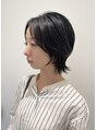 ショートウルフスタイルです。スタイリングは襟足をはねさせてバームで束間うを出して仕上げています。