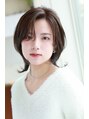 目の上で切りそろえたワイドバングが、印象的な眼差しを引き出す。毛先は外はねにし、個性と女性らしさを兼備したスタイルを完成させて。