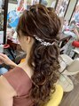 本人のバースデーイベント用ヘアセット♪お店で一番目立つように派手めに動かしました~♪髪の量を活かしてボボリューミーに\(^o^)/最後にアクセサリーを付けてっ♪特別な日のヘアセットは大事ですよね!任せてもらい嬉しかったです♪ありがとうございます
