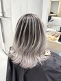 根元は暗めに残しつつ、中間~毛先にかけて細かく入れたバレイヤージュカラーで仕上げました。コントラストを強くしすぎず、グレー×シルバーの柔らかい色味で自然な立体感と透明感をプラスしています。