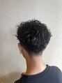 サイドはフェードでスッキリ、トップはオールバックにパーマで動きをプラス。男らしさ溢れるスタイルです◎