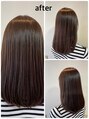 髪質改善カラーヘアエステ=通常のトリートメントとは持ちと効かせる箇所がかなり違います。表面ではなく毛髪内部に新しい結合を作り、髪が芯から強くなる為傷みにくくなります。柔らかくしなやかなハリコシのある髪質に近づきます。/宝塚美容室/宝塚髪質改善