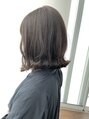 上品なアッシュグレージュにオトナ女子にオススメのボブ。表面の毛先だけ軽くして巻いた時にふわっとエアリー感のあるデザインでカットしています。可愛すぎない上品な女性におすすめ♪
