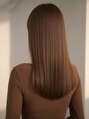 後ろ姿まで見惚れる、圧倒的な艶の縮毛矯正ストレート。独自の薬剤配合で、地毛のような柔らかい質感とまとまりを叶えます。深みのあるブラウンベージュで、パサつきを抑えて品のある印象に。髪質改善を求める大人女性にぴったりの美人ロングです。