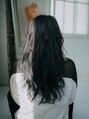 ダークグレーカラーでおとなしめのカラー☆ハーフカラーで透明感のある綺麗なお色です☆ロングスタイルでゆるふわに巻いてトレンドスタイルに!前髪を薄めに作ってシースルーバングにすることで軽さをだしています。DiMPlE越谷/越谷駅前