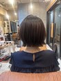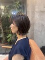 トップに自然な丸みを持たせた大人ショートボブ。顔まわりは軽くレイヤーを入れ、動きと抜け感をプラス。落ち着いたブラウンカラーで艶を引き出し、上品で柔らかな印象に仕上げたスタイルです。