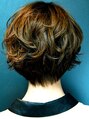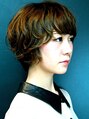 襟足すっきりショートボブ。毛束を捻りながらスライドカットで無造作感を出しました。大きさの異なるウェーブでリッジ感のあるランダムな動きを出しました。もみあげを長めに残すことで女らしさをキープ。 シックなファッションと合わせて大人可愛く。