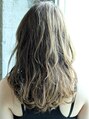 パーマでランダムにちりばめて巻き、ラフな動きと無造作なカールを形成しています。カラーはアウトラインにいれたハイライトとベースである10トーンのナチュラルグレージュでくすみをだして透け感を強調しました。肌も綺麗に生えるカラーとなっています。