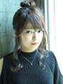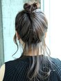 おくれ毛を出したカジュアルなお団子ヘアです。時間もかからず可愛くなりたい方にぜひオススメしたいスタイルです。カラーは8レベルのマーブルベージュカラーで落ち着いた印象を与えます。