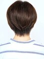 前髪を長めにしたセンターパートが特徴のショートスタイルです。トップにレイヤーを入れたマッシュベースのショートスタイルで、前髪がないスタイルなので幼くなりすぎないのも魅力です。