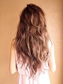 リッジの効いた大きめカールで ゆったりムードがモテを引き寄せる愛されロング。前髪をつくらないことで甘くなりすぎない大人感をプラス。