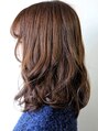 ミディアムのパーマスタイルです。顔まわりにレイヤーを入れて動きが出るようにカットしたスタイルです。中間から毛先中心にかけたデジタルパーマで太めの束感が特徴です。ランダムな毛束感とラフな動きが出るようになっています。