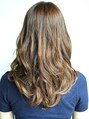 外国人風のくすんだアッシュカラーで透け感を出したロングレイヤーです。たてながAラインのシルエットにアイロンで動きをニュアンスでつけていて、束と束が重ならないようにしています。