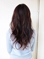 暗髪で 清楚感や大人感をだしてみました。ベーシックなAラインロングスタイルに顔周りに細かなレイヤーを施すことで抜け感をプラス。そこに22mm-24mmロッドでゆる巻きに♪
