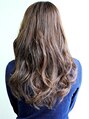 大人っぽいガーリーなロングのウェーブスタイルです。アイロンのミックス巻きで重ならない強めにランダムな毛流れをつくっています。内巻きと外巻きを繰り返して巻いてラフさを出しています。動きが出るよう全体は軽いスタイルに。