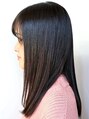 縮毛矯正でくせをのばしたストレートスタイルです。頑固な癖もこれで解決!日本人の特徴でもありますハチ張りもカバーし、コンパクトに仕上げています。つやはもちろんまとまりを出す為にレイヤーはほとんど入れていません。