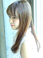 セミロングレングスでローレイヤーベースのストレートスタイルです。前髪は厚めにして顔を引き締め、日本人の特徴でもありますハチ張りもトップの位置をてっぺんにすることによりコンパクトに仕上げています。