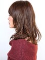 セミロングのウェーブスタイルです。毛先、中間にかけたデジタルパーマでラフな動きをつけています。巻き方はフォワードとリバースを段ごとに変えていますので重ならない強めにランダムな毛流れをつくれるのです。