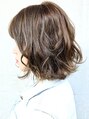 レイヤーをいれ、カールアイロンで動きを強めにつけたミディアムスタイルです。毛先と中間を26mmで巻いて束が重ならないようにして動きをだしています。前髪は斜めに流れるようにスライドカットを用いて切り、カラーはオレンジを排除したプラチナアッシュ。