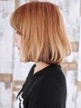 ソフトフリルなボブスタイル。肩ラインの前下がりベースでカット。全体に柔らかさを出すためにセニングは使わずスライドカットのみで毛量調整。パーマは30mmのロッド1回転半巻きの毛先のワンカールメイク。