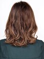 レイヤーをいれ、カールアイロンで動きを強めにつけたミディアムスタイルです。毛先と中間を26mmで巻いて束が重ならないようにして動きをだしています。