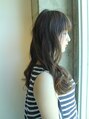 Aラインシルエットのロングスタイルです。バックはほぼワンレングスですがトップと顔まわりはレイヤーが入っていますのでカールによるラフな動きが出やすいスタイルです。