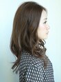 デジタルパーマでかけた強めのウェーブによりラフで無造作な動きが楽しめます。中間巻きでフォワードリバース交互に巻いてかけ、トップは根元がおきるようにかけています。重くならないようレイヤーとセニングで毛先を軽くしている点も特徴です。