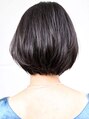 ツヤ感を強調したストレートのショートスタイルです。顔周りはレイヤーを入れて顔を包みこむように切っていますので小顔効果も期待できます。毛先を少し重めにしていますので、乾かすだけで簡単にまとまるヘアスタイルとなっています。
