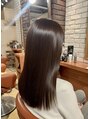 暗髪でも重たく見えない、透けるような透明感。スタイリングの仕方:ストレートアイロンで艶を出し、軽くオイルで仕上げ。【003スタイル】
