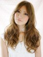 デジタルパーマで空気感あるウェーブを出しています。大きめのカールが立体感と陰影を作るので深みと透明感を演出♪前髪は『センターパート』カラーはクリアな印象で顔なじみも良いハニーベージュ。顔周りにリバース向きの動きを作って大人っぽさも◎
