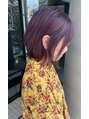 ロングからバッサリとボブに切らせていただきました!バッサリ切っても似合うカットライン。そして似合う前髪に拘っています。カラーはブリーチ後にパープルグレーを重ねたパープルガーネット。ブリーチカラーもできるだけダメージレスな仕上がりにします◎