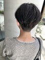 サイドは6ミリ、襟足はハサミで優しく刈り上げた2ブロックショート。女性らしく、柔らかく動くマッシュベースに切るのがポイントです*カラーは7トーンのネイビーアッシュで品良く◎短くても、女性らしく、品のあるショートに切ります◎