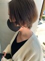 大人女子のハンサムショート。襟足はスッキリ目。サイドは少し重さを残す。前髪とサイドは透け感がでる質感に。カラーはカーキベージュにより大人っぽくクールな仕上がりに◎