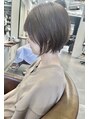 透自然な前下がりベースのショートボブ。カラーは10トーンのオリーブグレイで柔らかく透明感のある雰囲気に創らせていただきました!髪質に合わせた切り方やカラーをしっかりと選して施術することで。柔らかな質感や、透けるような透明感のあるstyleに。