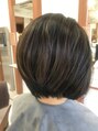 ハイライトで立体感をだす前下がりボブ。トップをふんわりみせるためにハイライトで陰影をつけてカットのベースとカラーの配置でふんわり見えるようにさせていただきました。