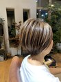 一度全体を細かいハイライトを入れ、その後、白髪染めのカラーを使わずにカラーをしていきます。ベースが明るいので日にちが経っても根本の白さが気になりにくくなります。