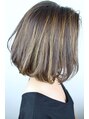 肩上のボブにハイライトを入れ、立体感を出しました。重たくなりがちなボブにはハイライトで動きを作ると立体感が出るのでおすすめです。毛先を巻くことでより立体感が強調され、こなれ感もアップします。