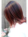 バレーヤージュをベースにマダーレッドを被せました。表面のエアタッチ部分を増やすことで白髪ぼかし効果も◎。暗めトーンのファッションが増えるこれからの時期オススメです。