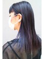 ハイライトを全体に入れた後、ダークブルーバイオレットをオンカラーしています。濃いめのカラーを被せるのでブリーチ部分が全体的によく馴染みます。退色過程も長く楽しめます。全体の白髪ぼかしにも効果的です。