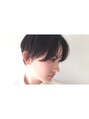 前髪とサイドが繋がるハンサムショート。襟足は刈り上げはせず、短くスッキリ切っています。短めのショートスタイルですが、カジュアルになりすきないのうに、モードな印象も少しとライれました。