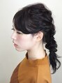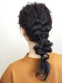 全体を波ウェーブにして、大きい編みこみを中心より左側からつくります。右サイドからもう1本編みこみを作り、センターの編みこみに巻きつけます。全体を引っ張ってワイドに広げラフ差をだして完成です!!リボンを付けてもキュート!!