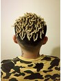 アフローパーマをあてて、編んだショートタイトロープスタイルです。ツーブロックベースに毛先のブリーチカラーがgood!毛先は解けないように、かぎ針でしっかりロックしてます。