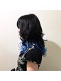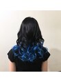 トップから中間は地毛の髪色を生かしてそのまま残し、毛先のみ自然なグラデーションになるようにしっかりブリーチをしています。色素を薄くした毛先に対し、マニックパニックのロカビリーブルーで鮮やかに染め上げました。