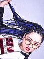 ブラックにブルーのメッシュでまとめたクールなスタイル。エクステンションで作るスタイルなので薬剤の影響による髪の毛のダメージはありません。ご予約の際ブレイズのデザインやカラーの確認が事前に必要な為お電話でのご予約とご相談宜しくお願い致します。