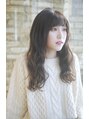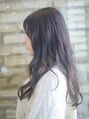 段が入っていない重めのロングヘアアゴ下から、ゆるめのパーマをかけてこなれ感を!カラーは暗めのラベンダーベージュで、光に当たると透明感が出る調合にしています!